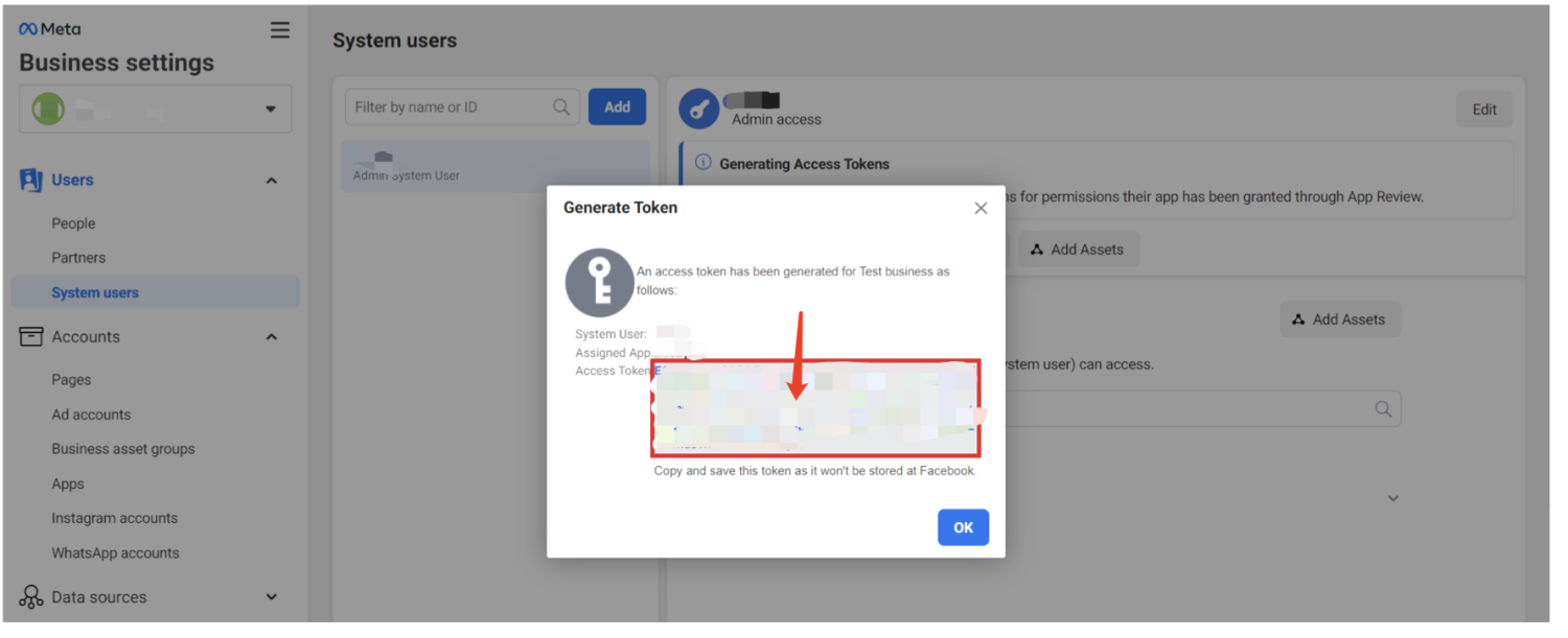 步骤 4:生成 WhatsApp 令牌