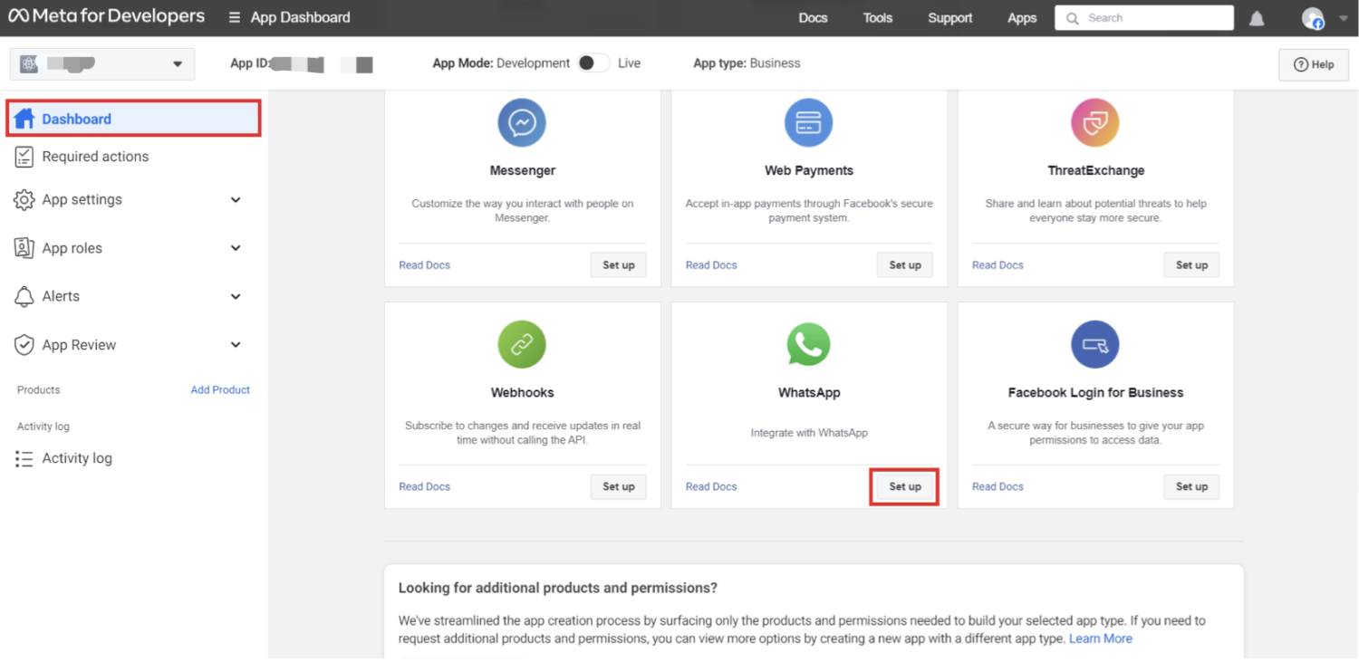 步骤 3:为 WhatsApp 集成设置 Meta (Facebook) 应用